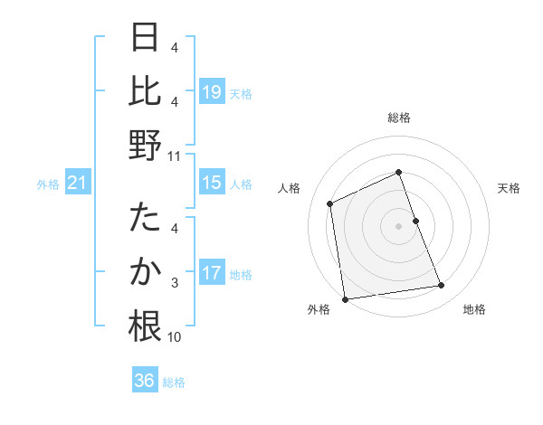 日比野 たか根さんを姓名の画数から五運を鑑定