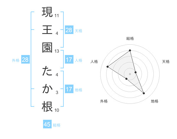 現王園 たか根さんを姓名の画数から五運を鑑定