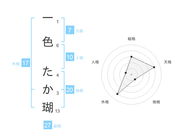 一色 たか瑚さんを姓名の画数から五運を鑑定
