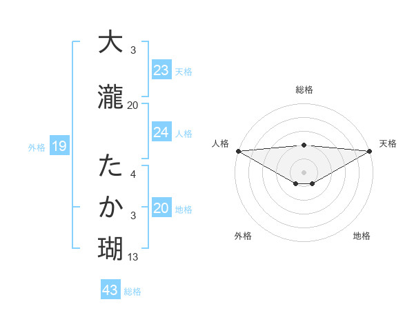 大瀧 たか瑚さんを姓名の画数から五運を鑑定