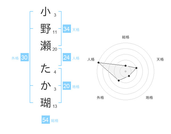 小野瀬 たか瑚さんを姓名の画数から五運を鑑定