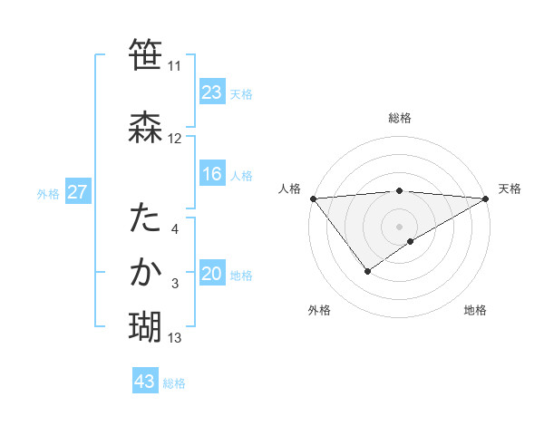 笹森 たか瑚さんを姓名の画数から五運を鑑定