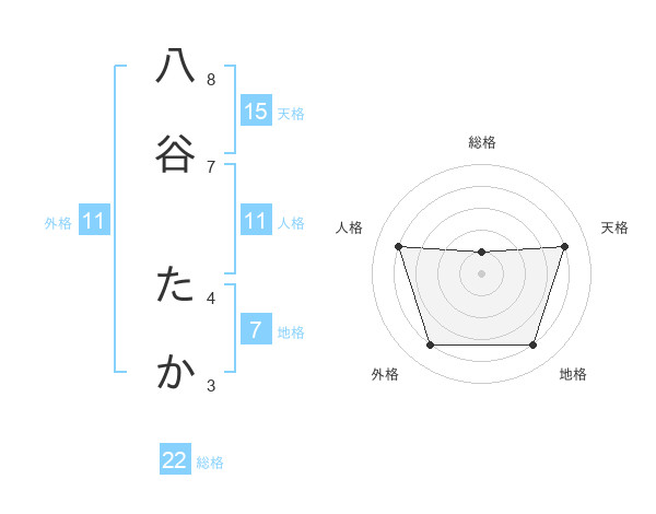 八谷 たかさんの外格は11画の4点!