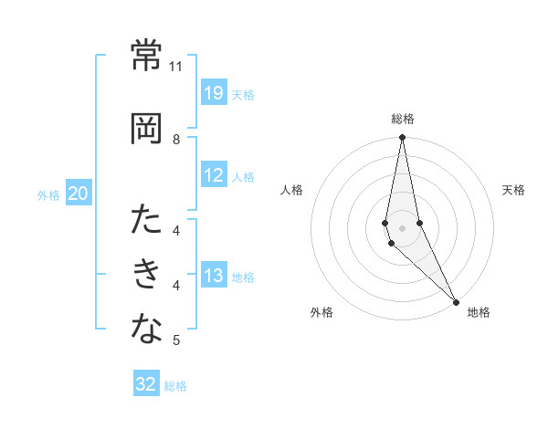 常岡 たきなさんを姓名の画数から五運を鑑定