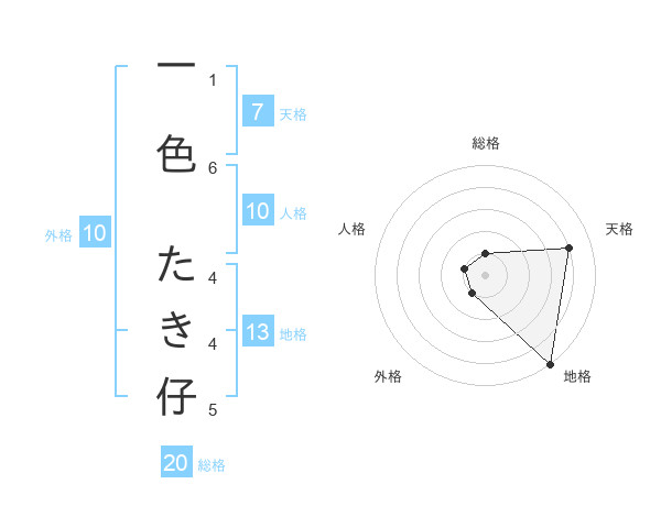 一色 たき仔さんの地格は13画の5点!