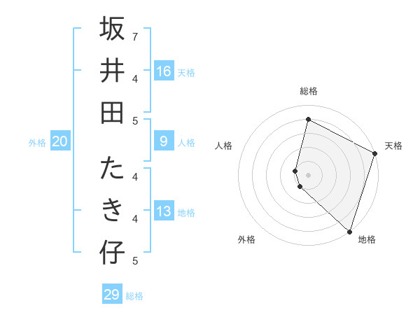 坂井田 たき仔さんを姓名の画数から五運を鑑定