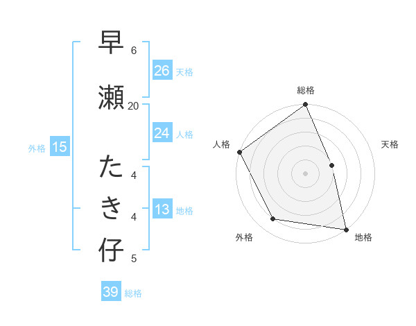 早瀬 たき仔さんを姓名の画数から五運を鑑定