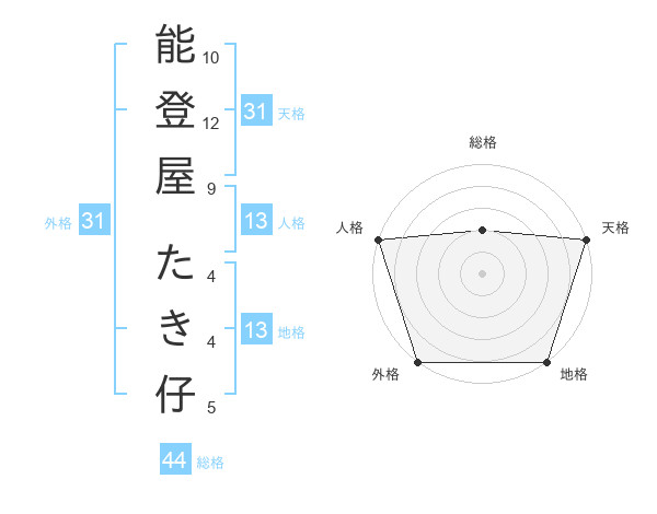 能登屋 たき仔さんを姓名の画数から五運を鑑定