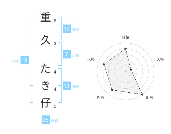 重久 たき仔さんの総格は25画の4点