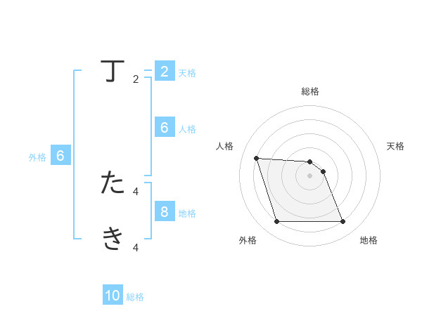 丁 たきさんの総格は10画の1点!