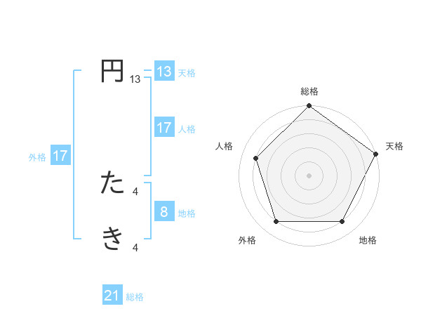 円 たきさんの総格は21画の5点!