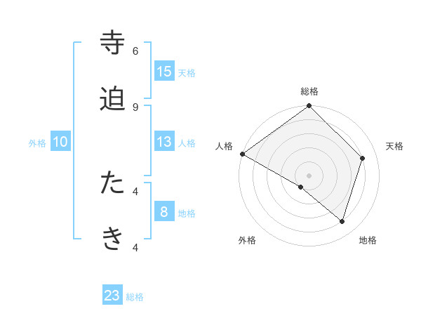 寺迫 たきさんの天格は15画の4点!