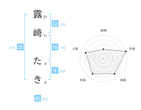 露﨑 たきさんを姓名の画数から五運を鑑定