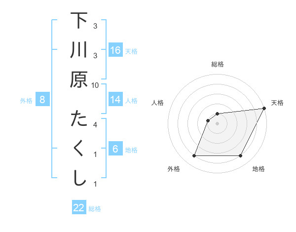 下川原 たくしさんを姓名の画数から五運を鑑定