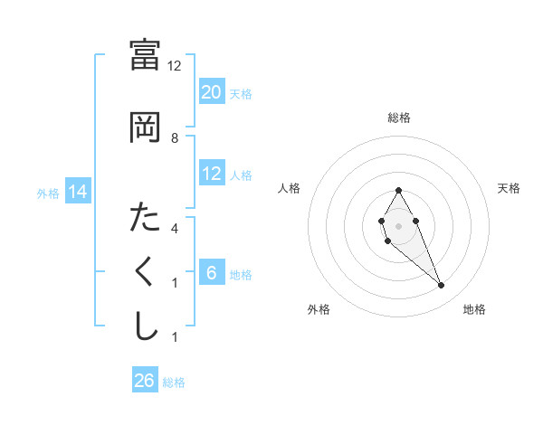 富岡 たくしさんを姓名の画数から五運を鑑定