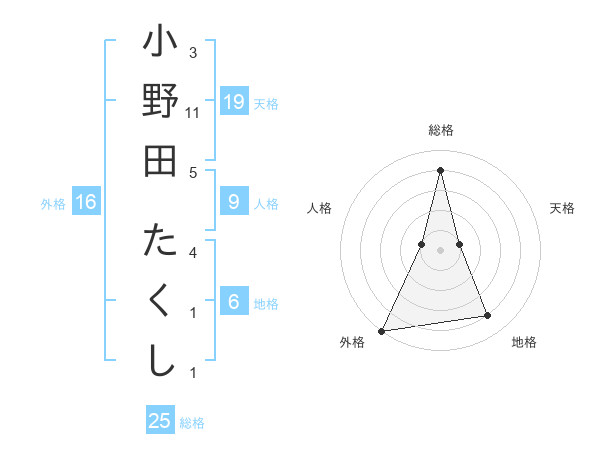 小野田 たくしさんを姓名の画数から五運を鑑定