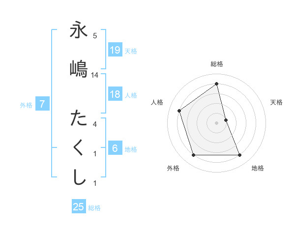 永嶋 たくしさんの総格は25画の4点!