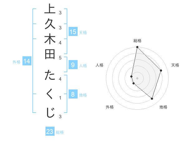 上久木田 たくじさんの総格は23画の5点!