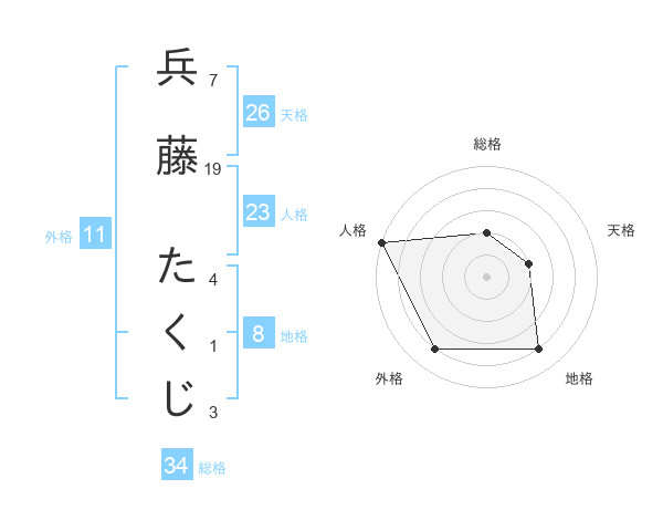 兵藤 たくじさんを姓名の画数から五運を鑑定