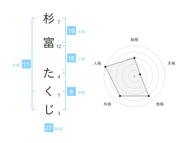杉富 たくじさんの総格は27画の3点!