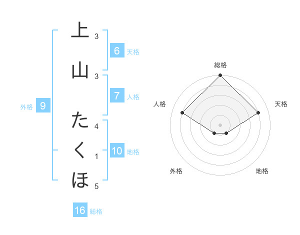 上山 たくほさんの天格は6画の4点!