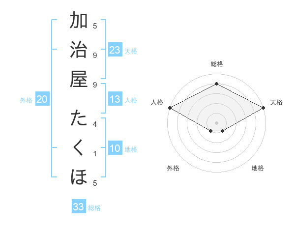 加治屋 たくほさんを姓名の画数から五運を鑑定