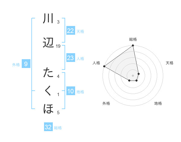 川辺 たくほさんを姓名の画数から五運を鑑定