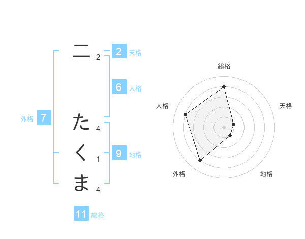 二 たくまさんの総格は11画の4点!
