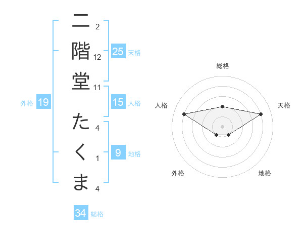 二階堂 たくまさんを姓名の画数から五運を鑑定