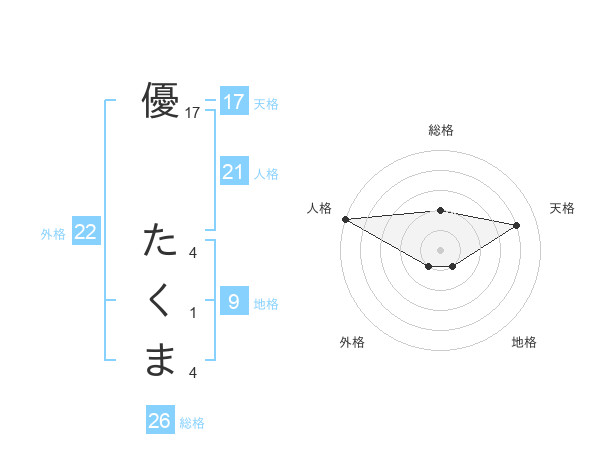 優 たくまさんの天格は17画の4点!