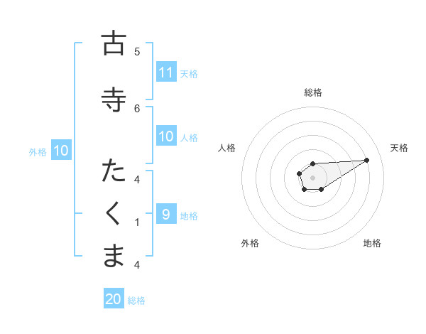 古寺 たくまさんの総格は20画の1点!