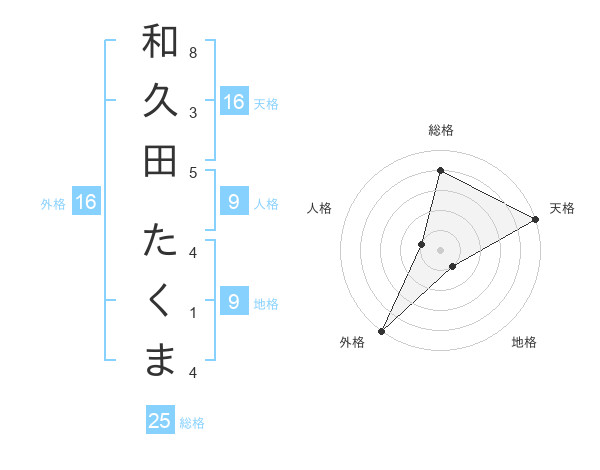 和久田 たくまさんを姓名の画数から五運を鑑定