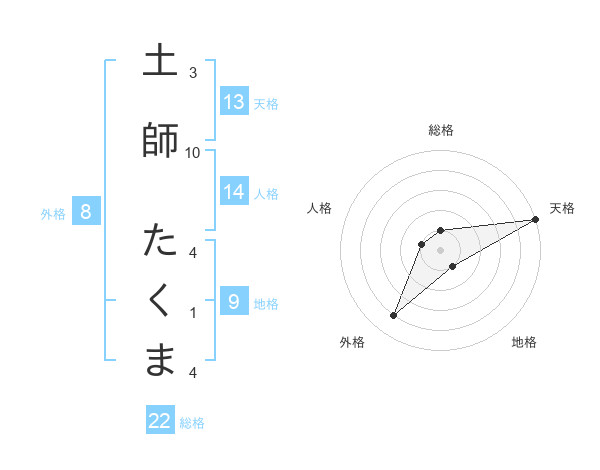 土師 たくまさんの天格は13画の5点!