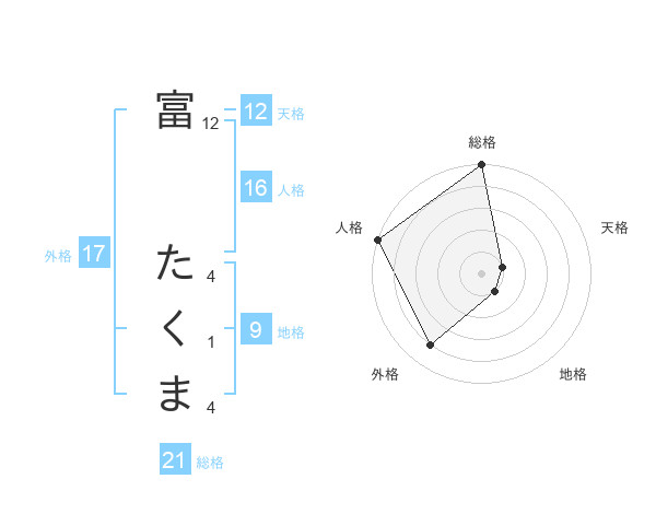 富 たくまさんの総格は21画の5点!