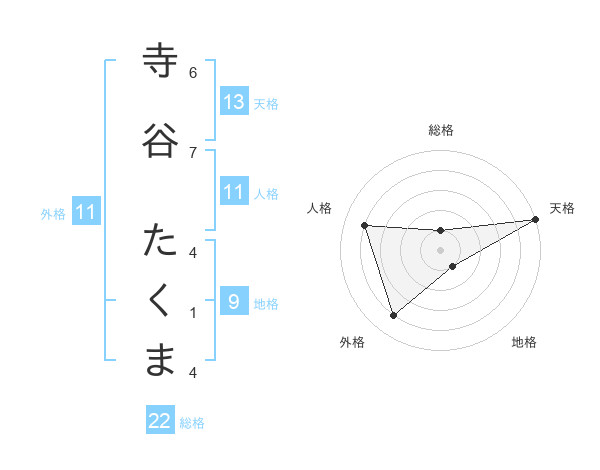 寺谷 たくまさんの天格は13画の5点!