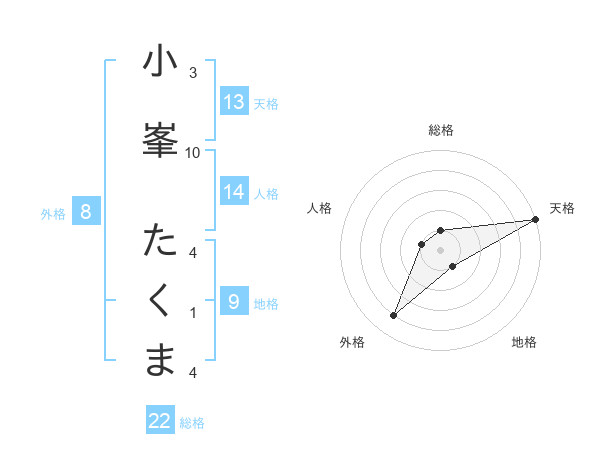 小峯 たくまさんの天格は13画の5点!