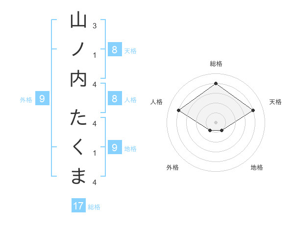 山ノ内 たくまさんを姓名の画数から五運を鑑定