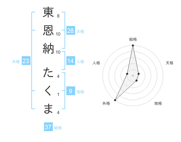 東恩納 たくまさんの総格は37画の5点!