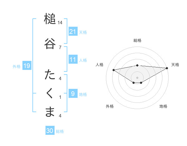 槌谷 たくまさんの天格は21画の5点!