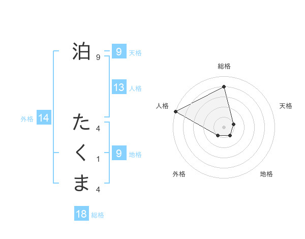 泊 たくまさんの総格は18画の4点!