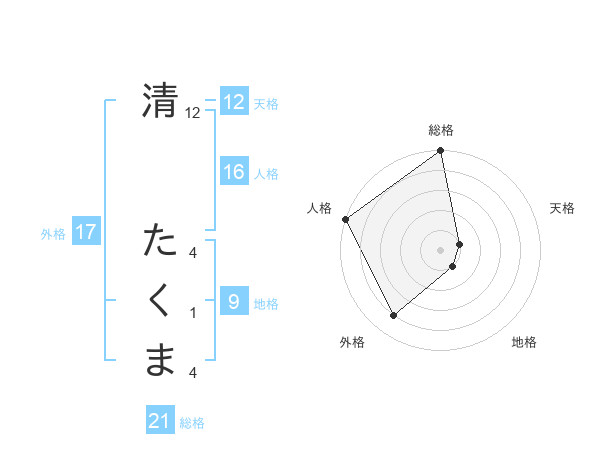 清 たくまさんの総格は21画の5点!