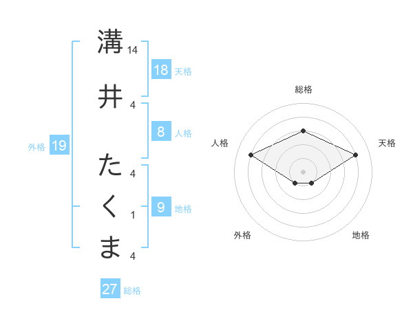 溝井 たくまさんの総格は27画の3点!