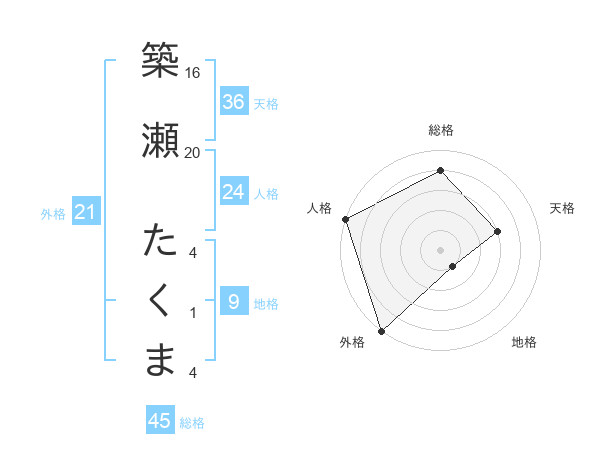築瀬 たくまさんの総格は45画の4点!