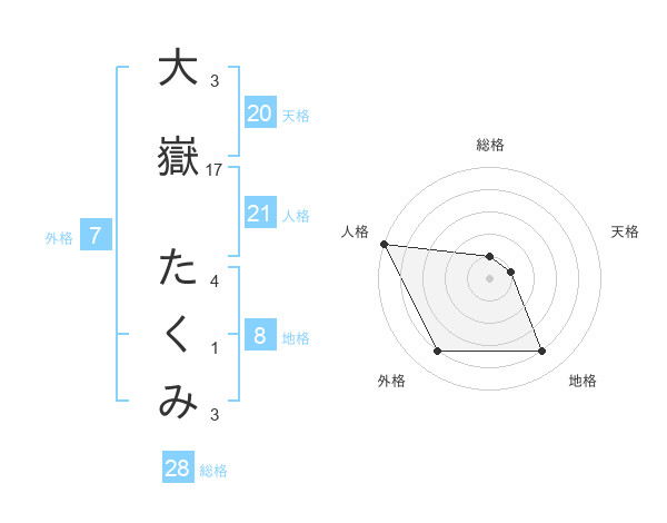 大嶽 たくみさんの総格は28画の1点!