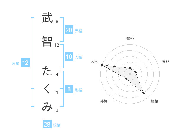 武智 たくみさんの地格は8画の4点!