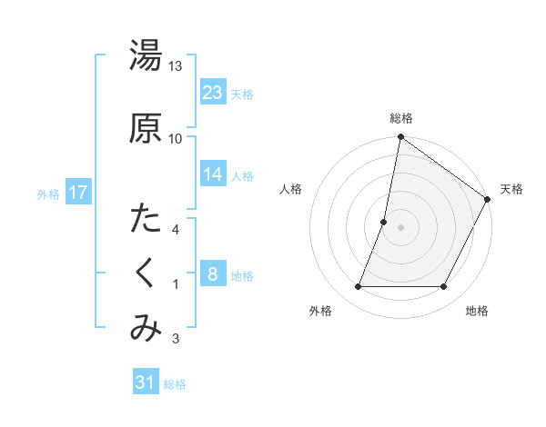 湯原 たくみさんを姓名の画数から五運を鑑定
