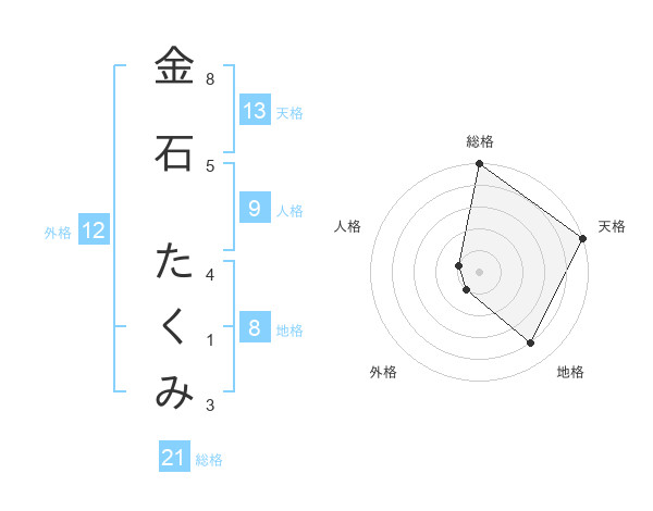金石 たくみさんの総格は21画の5点!