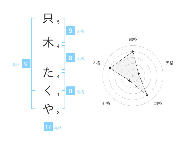 只木 たくやさんの地格は8画の4点!