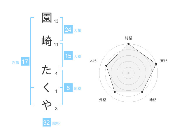 園崎 たくやさんの総格は32画の5点!