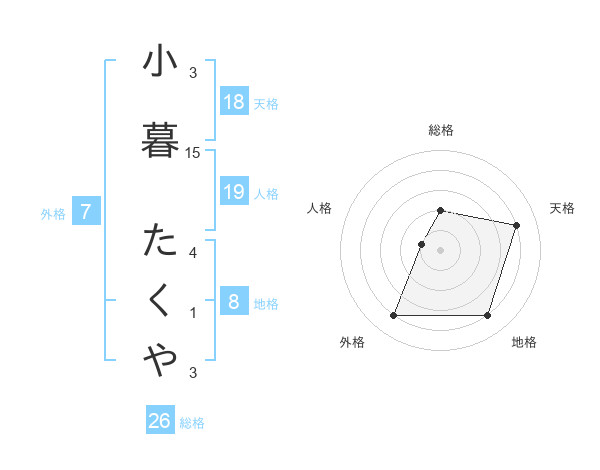 小暮 たくやさんの地格は8画の4点!